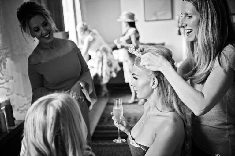 I began the day with Jamie‑Lee in the bridal suite as she finished getting ready. Those early moments — calm, focused and full of anticipation — are always some of my favourites to photograph. From there, the day unfolded naturally.